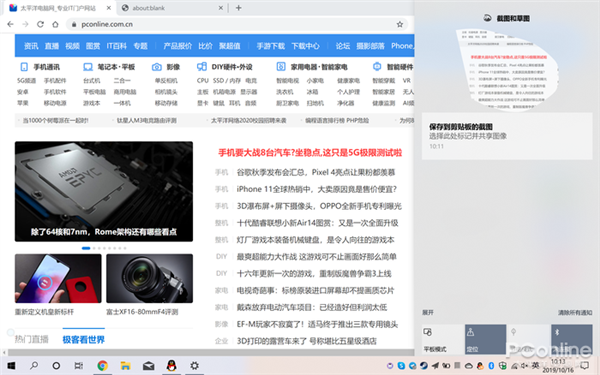 进行截屏后,通知中心会出現截屏进行的提示,点一下就可以对截屏开展编写。Win10内置截屏的在线编辑器,能够对截屏开展剪裁、艺术涂鸦等诸多实际操作,還是非常好的。