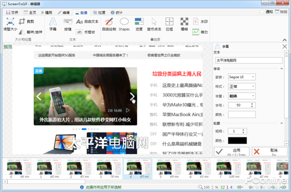 在ScreenToGif中,还能够调节GIF视频录制的帧率,还可以自主键入清晰度自定规格,根据键盘快捷键“F7”、“F8”就可以刚开始、终止视频录制。视频录制进行后,即会自主开启在线编辑器,出示的是GIF截屏到编写一条龙服务。
