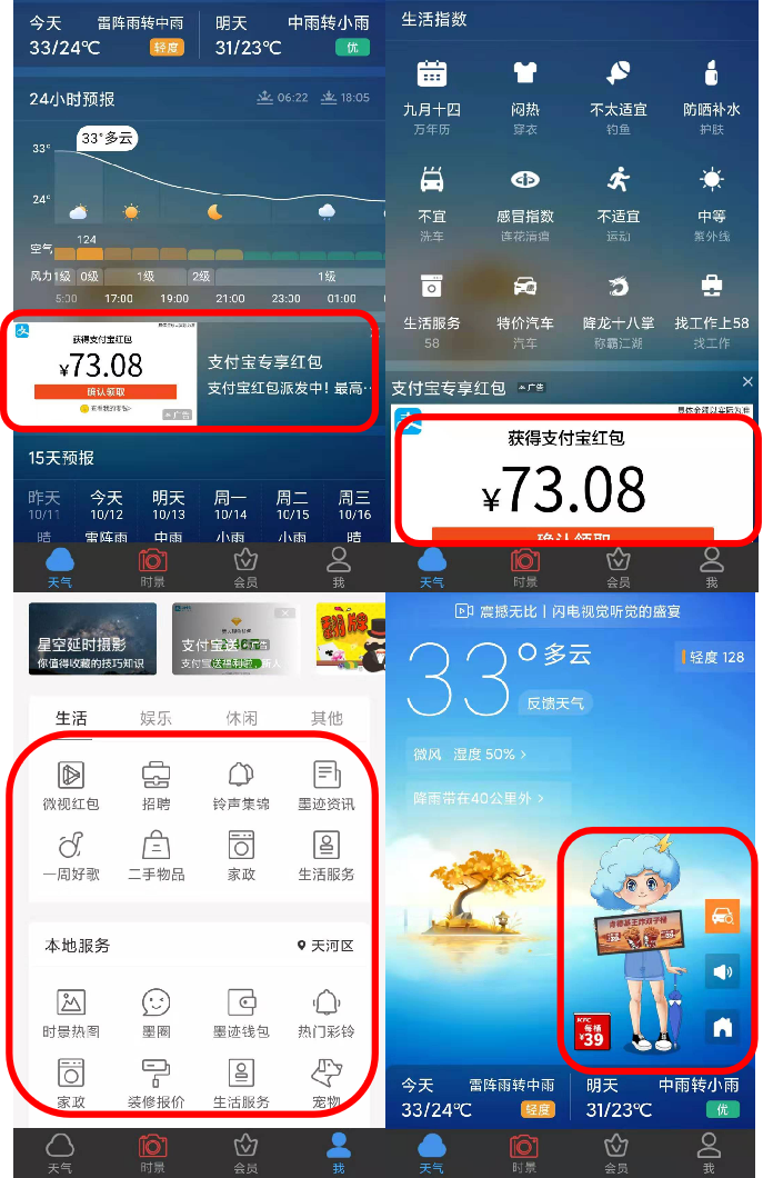 而现在手机大都自带了天气应用,比如华为天气、MIUI天气、iOS天气等,通过手机自带的天气应用,大都可以满足用户的基本需求,而墨迹天气的又很难和这些自带应用做出差距,这也在无形中减少了用户。